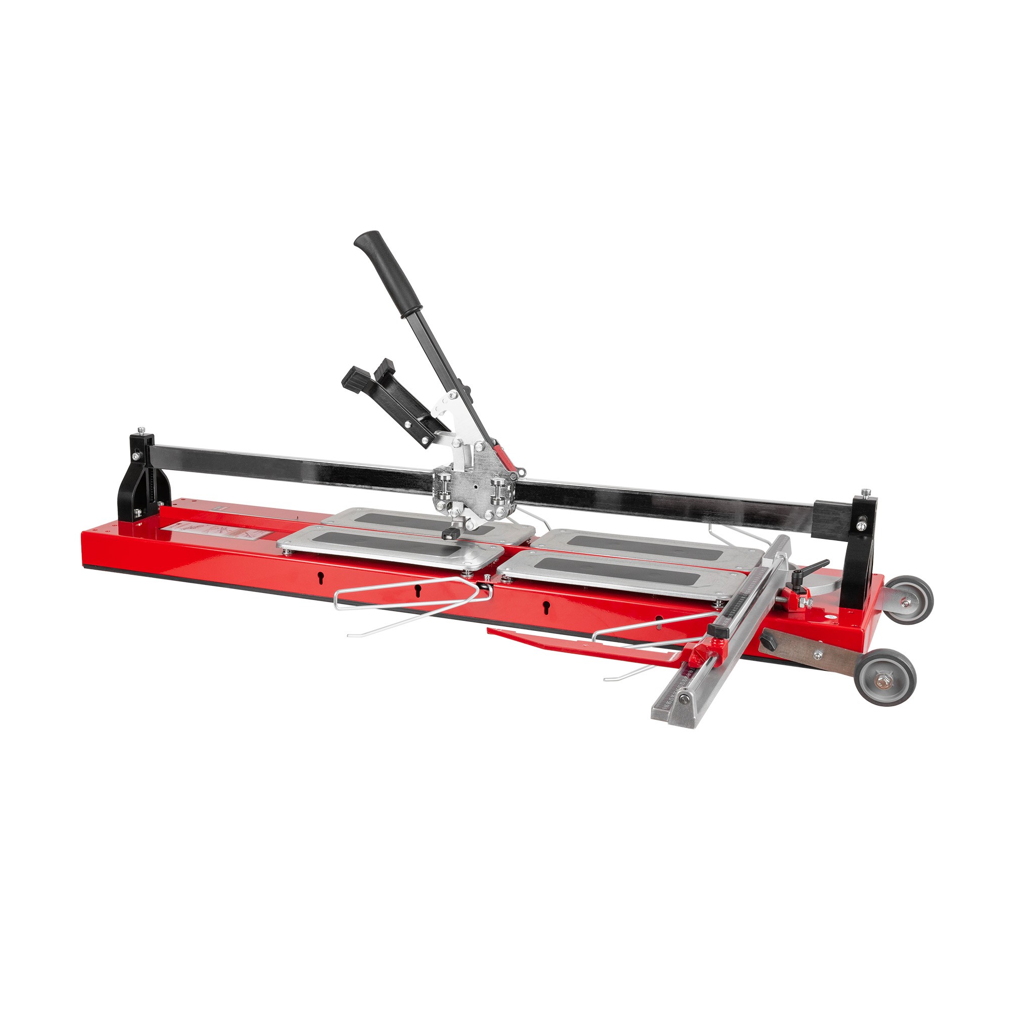 Ручной плиткорез KRISTAL GIGA-CUT 935 артикул 35502 – выполнен из никелированной стали с порошковым защитным покрытием. Ручка может иметь два положения для регулировки рычага усилия и оснащена двумя сверхпрочными лапками для деликатного разлома на разной ширине плитки. Обе лапки имеют пластиковое покрытие и не оставляют следов на плитке, малая лапка оснащена магнитом, что облегчает процесс резки. Благодаря механизму каретки, оснащенной подшипниками, КРИСТАЛ ГИГА-КАТ 935 имеет плавный ход, что позволяет выполнять более точную безошибочную резку. С помощью дополнительных опорных ножек удобно работать с плиткой большого формата. Откидной боковой упор-линейка с двумя миллиметрованными шкалами. Первая шкала для любых измерений, вторая шкала для измерений под углом 45_ (с величиной катетов, соответствующей гипотенузе на первой шкале). Мгновенное закрепление линейки с помощью рычага фиксатора. Резиновые ножки против скольжения и царапин поверхности. Плиткорез комплектуется режущим роликом на подшипнике. Плиткорез оснащён колёсами для облегчённого передвижения. Расширенные амортизирующие площадки с обрезиненной поверхностью исключающие скольжение плитки по поверхности. В качестве опций плиткорез может быть оснащен комплектом из четырех ножек для удобства эксплуатации, приставным столом с ножками для размещения габаритной плитки, лазерным визиром.