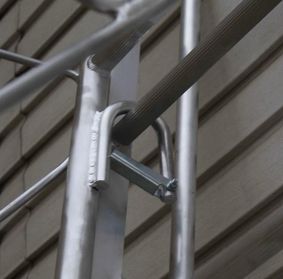 Легкий вес Два фиксатора на верхних крюках-зацепах Максимальная нагрузка 120 кг Может использоваться как самостоятельно, так и в комплекте со строительными лестницами |