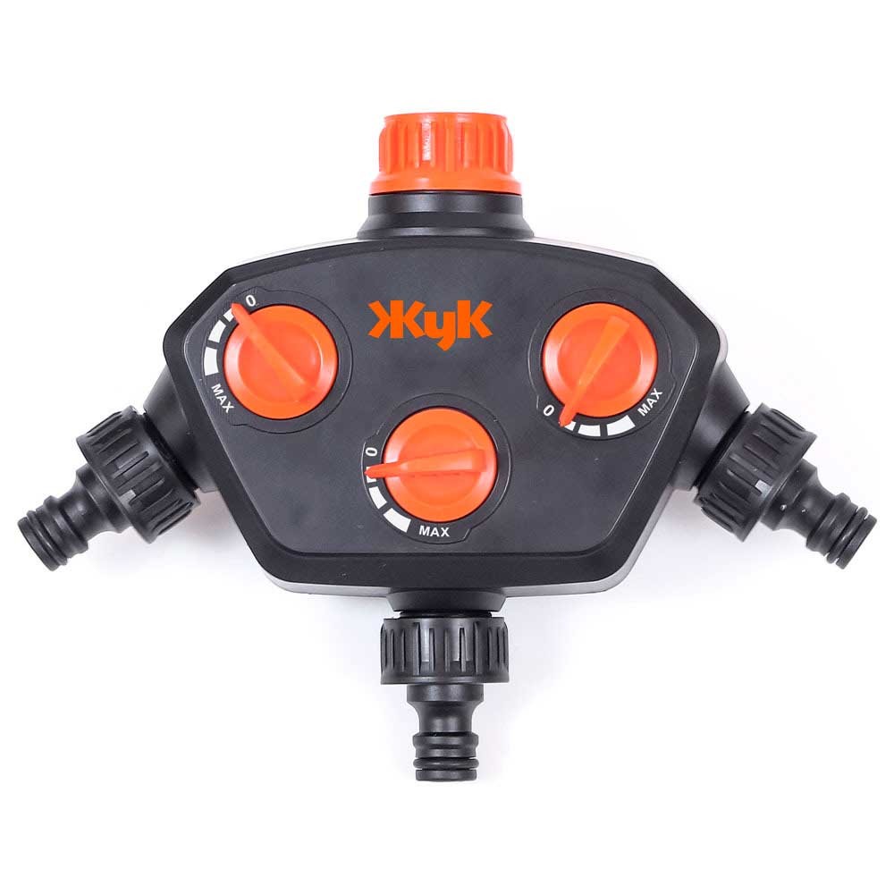 Три выхода для воды с независимыми регуляторами. Возможность регулировки подачи воды в каждом из выходов от 0 до максимальной. Прочная и надежная конструкция корпуса и всех элементов изделия. Этикетка с торговой маркой «Жук» и делениями регулировки подачи воды на корпусе распределителя. |