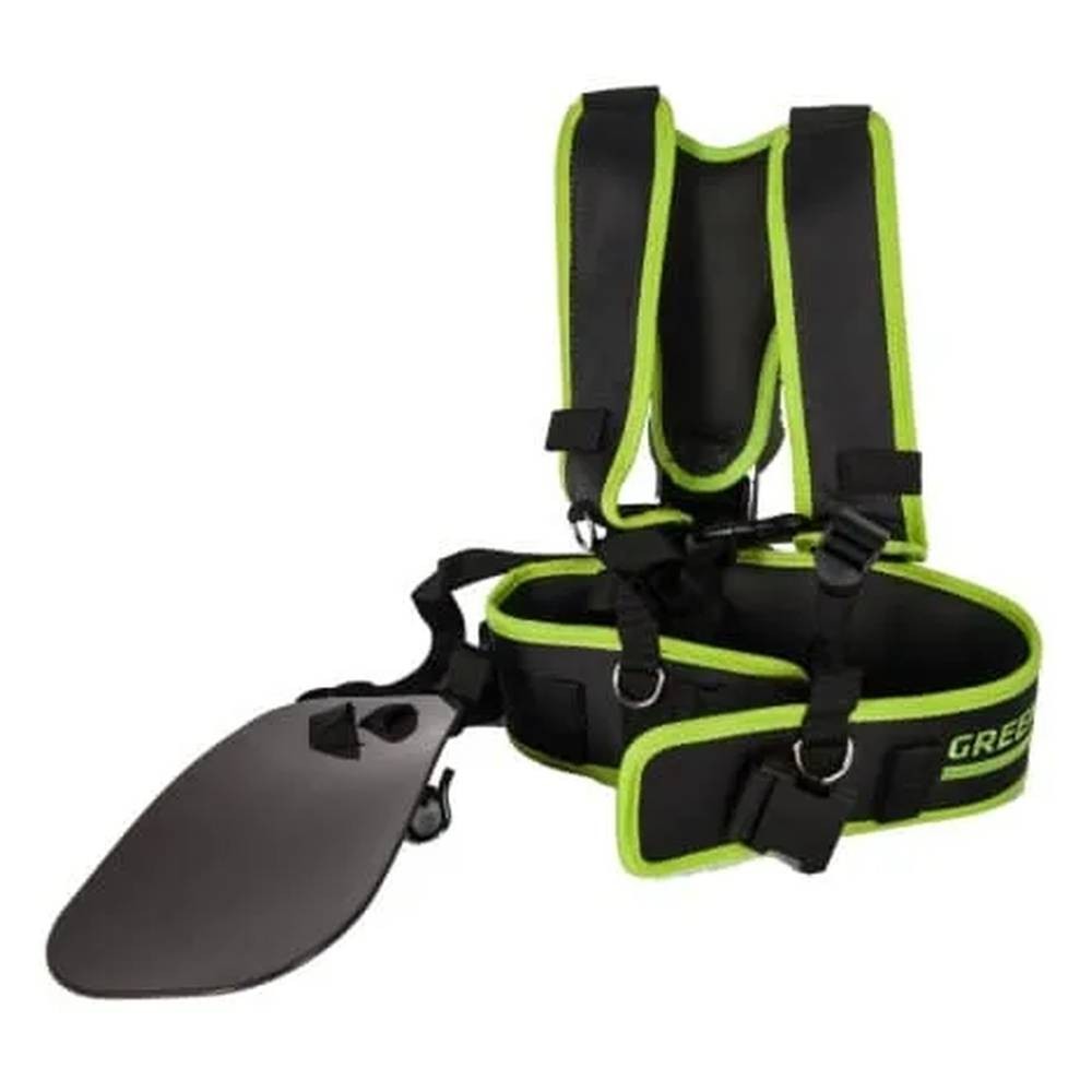 Ремень наплечный ранцевый Greenworks для триммера G82B5 82V - жилет-держатель для переноски аккумуляторов Greenworks 82V. Оснащен поясом и наплечными лямками для равномерного распределения веса. Пояс и наплечные лямки распределяют вес и уменьшают нагрузку на всё тело, что упрощает процесс работы. Комплект сделан из прочного материала и регулируется под рост и телосложение оператора. Карман для батареи имеет верхний фиксатор, что является дополнительной страховкой аккумулятора от несчастных случаев.