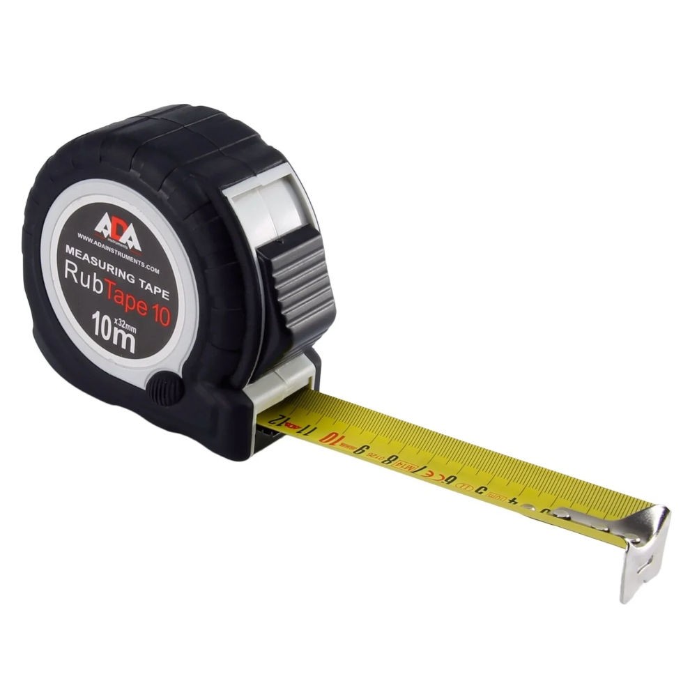 Рулетка измерительная ADA RubTape 10 10м х 32мм с фиксатором А00154 - простая, надёжная рулетка, защищённая ребристым резиновым элементом, предохраняющем корпус при падении. Имеет яркую, чёткую, хорошо читаемую измерительную шкалу и классическую систему постоянной фиксации переключателем спереди.