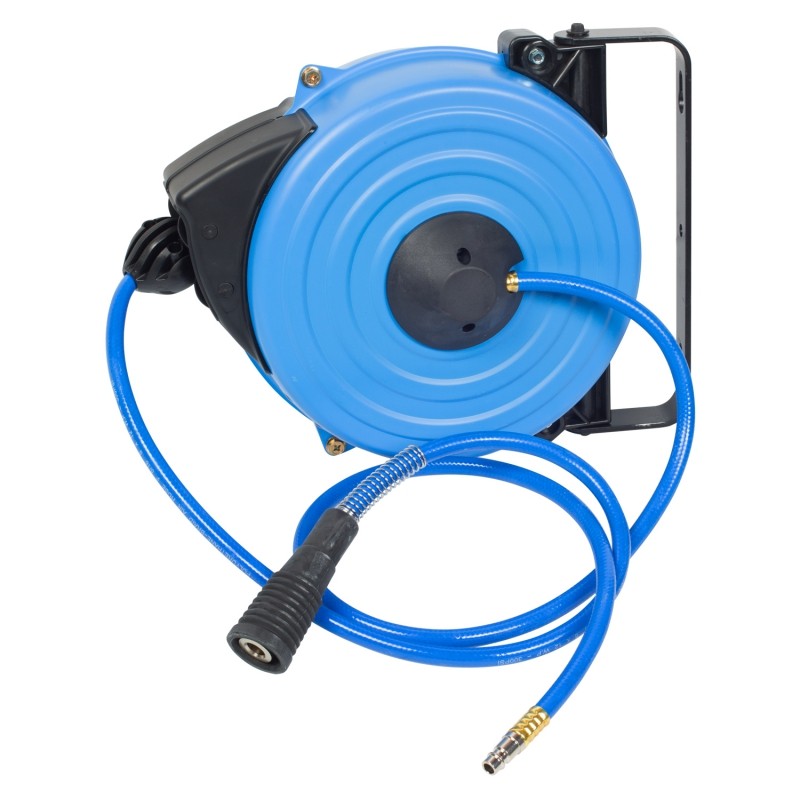 <div class="catalog-product-attributes__white-gradient"></div> Назначение: Шланг на автоматической катушке предназначен для подведения сжатого воздуха к пневматическому инструменту, подключения пневматического оборудования, а также для проведения воздушных магистралей к рабочему месту. Область применения: Станции технического обслуживания автомобилей (СТО), автосервисы, автомастерские. Описание: Шланг размещён на автоматической катушке закрытого типа. Конструкция автоматической катушки позволяет установить шланг на рабочем месте, закрепив его посредством кронштейна на стене, верстаке или другом любом неподвижном предмете, таким образом, чтобы при необходимости использования шланга, катушка всегда была под рукой.Фиксатор пружинного механизма катушки позволит зафиксировать шланг на необходимой длине, а по окончании работы поможет свернуть шланг обратно. Дополнительные преимущества: • Устойчив к воздействию горюче-смазочных материалов. • Устойчив к воздействию влаги. • Износоустойчив и гибок: шланг армирован по |