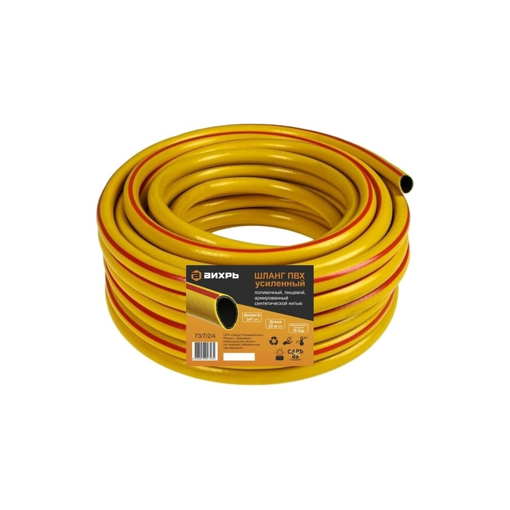 Шланг Вихрь поливочный ПВХ усиленный, пищевой трехслойный армированный 1/2", 50м (жёлтый)