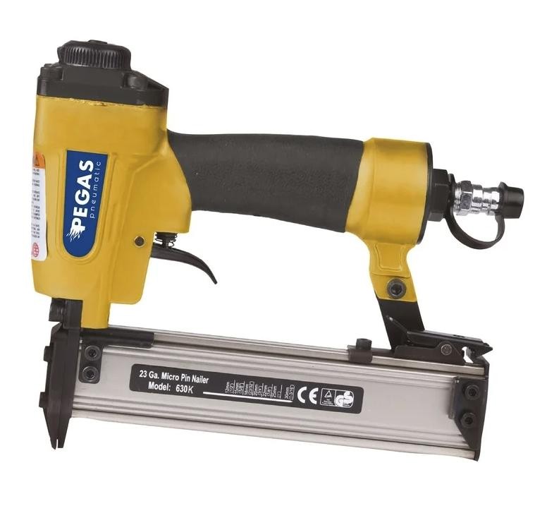 Шпилькозабивной пистолет Pegas pneumatic 630K может использоваться на производстве корпусной мебели, для отделочных работ, при укладка паркета, для крепления молдингов и т.д. Благодаря лёгкому весу и эргономичной форме, пистолет удобно лежит в руке, обеспечивая точность и комфорт даже при длительной работе. Вместительный магазин на 100 единиц крепежа обеспечивает долговременную беспрерывную работу. Металлический корпус защищает внутренние узлы от повреждений и продлевает срок службы инструмента. Пистолет имеет простое подключение благодаря быстросъёмному соединению. Высокая мощность при отличной эргономике делает данную модель одной из лучших в своём классе.
