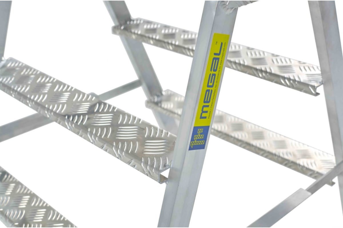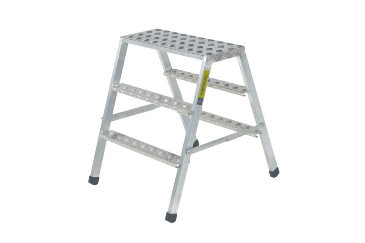 Складная конструкция Легкий вес Верхняя рабочая площадка - 600х230 мм Широкие ступени 85мм из рифленого алюминиевого профиля Резиновые противоскользящие башмаки |