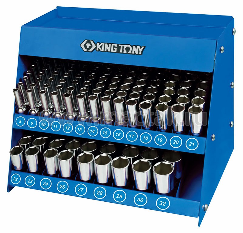 Стенд с глубокими торцевыми головками 1/2", 8-32 мм, серия 4235M, 165 предметов KING TONY 4566MR