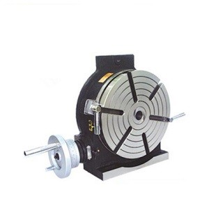 <div class="catalog-product-attributes__white-gradient"></div> Поворотный стол ( 200 мм, конус МТ-3) предназначен для установки и закрепления деталей при обработке их на металлорежущих станках. Поворотный стол фирмы является необходимым приспособлением при выполнении операций кругового фрезерования, при выполнении и обработке различных элементов деталей расположенных через угловые расстояния. Стол состоит из корпуса, планшайбы, червячного колеса и червяка. Вращение осуществляется при помощи червячной пары вручную ручкой маховика. Конструкция корпуса стола позволяет его использование, как в горизонтальном, так и в вертикальном положении, в том числе с применением задней бабки ТS-1,2 для надежного закрепления, при фрезеровании деталей типа «вал». Поворотные горизонтально/вертикальные столы HV применяется в мелко- и среднесерийном производстве, на горизонтальных и вертикальных фрезерных станках для установки одной или более заготовок. Габаритные размеры ДхШхВ мм : 220х265х105 мм, масса 27 кг |