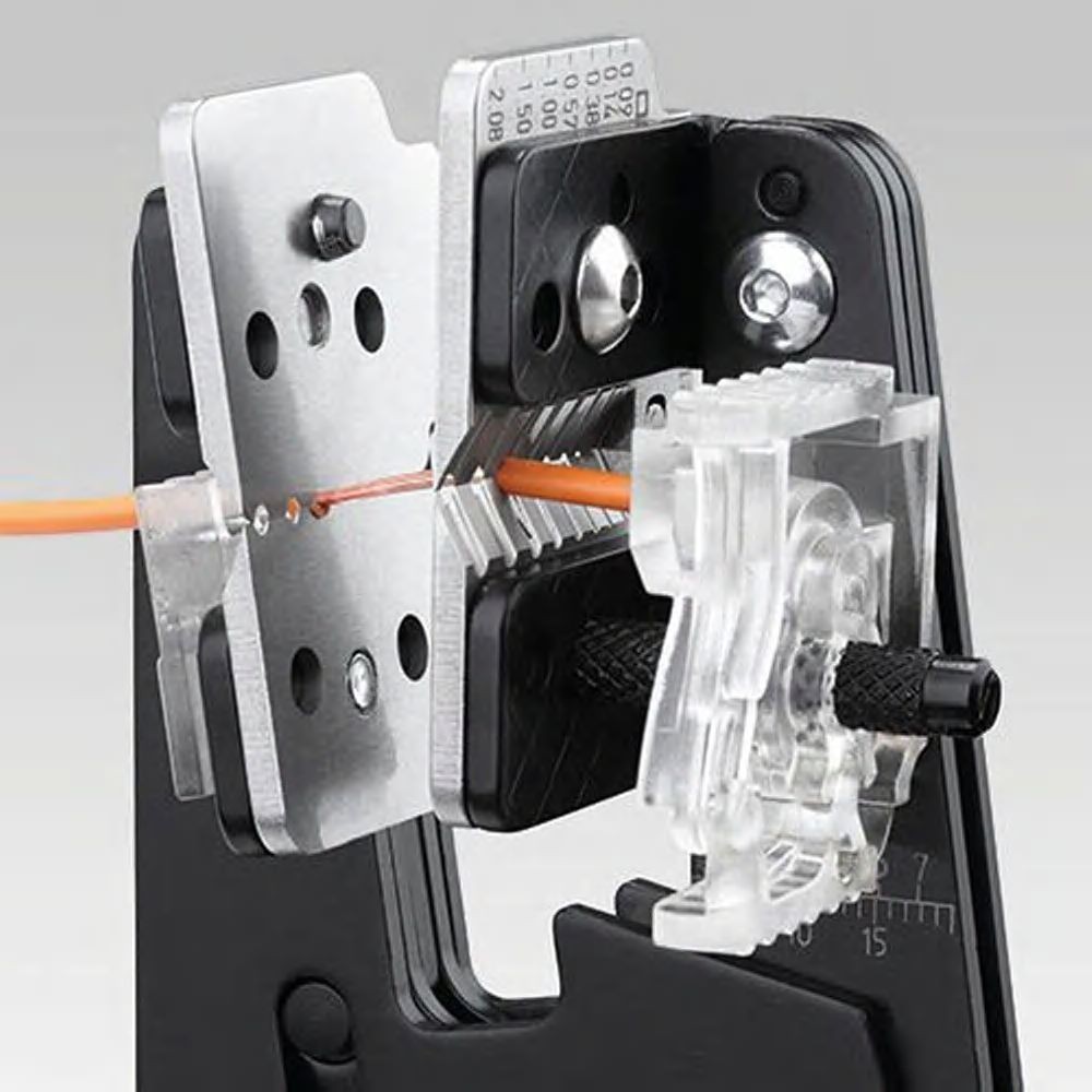 12 12 11 Стриппер прецизионный для удаления изоляции аккуратное и точное снятие изоляции из таких трудно удаляемых материалов, как ПТФЭ, силикон, радокс®, каптон® и резина, в т.ч. многослойной изоляции.. вторая пара ножей надежно фиксирует оставшуюся изоляцию. точно регулируемые по соответствующему сечению проводника сменные фасонные ножи. с регулировкой ограничителя длины для получения одинаковой длины удаляемой изоляции в серийных работах. для кабелей, используемых в солнечных модулях, специально настроены на удаление многослойной изоляции из радокса. с дополнительной опорой для кабеля для лучшего центрирования многослойного изолированного провода. Kapton® - зарегистрированный торговый знак E. I. du Pont de Nemours and Company. Radox® - зарегистрированный торговый знак Huber & Suhner AG. - Параметры удаления изоляции кв.мм: 1,5 / 2,5 / 4,0 / 6,0mm2 - AWG: 16 — 10