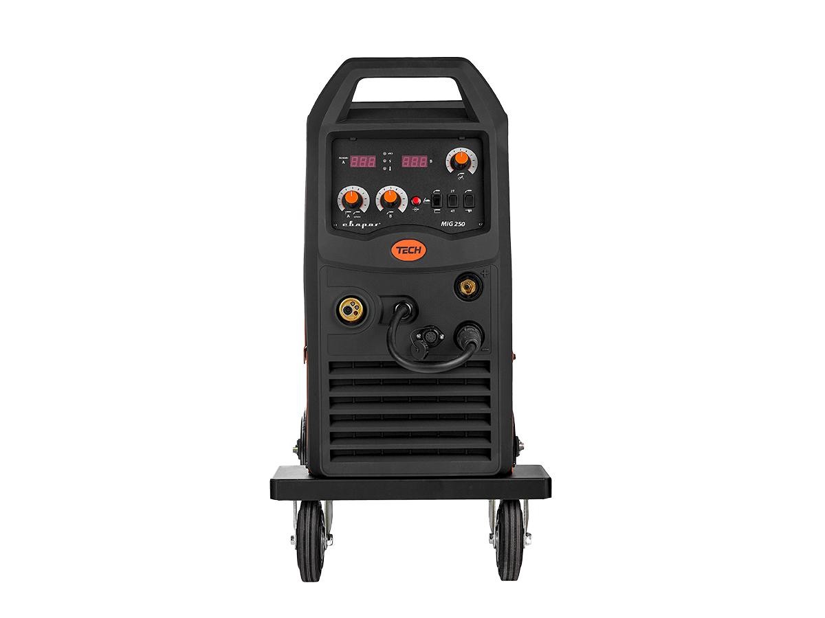TECH MIG 250 (N257)— инверторный сварочный аппарат для полуавтоматической сварки в среде защитного газа (MIG/MAG), сварки порошковой проволокой (FCAW), ручной дуговой сварки покрытым электродом (MMA), а так же для аргонодуговой сварки неплавящимся электродом (TIG Lift).