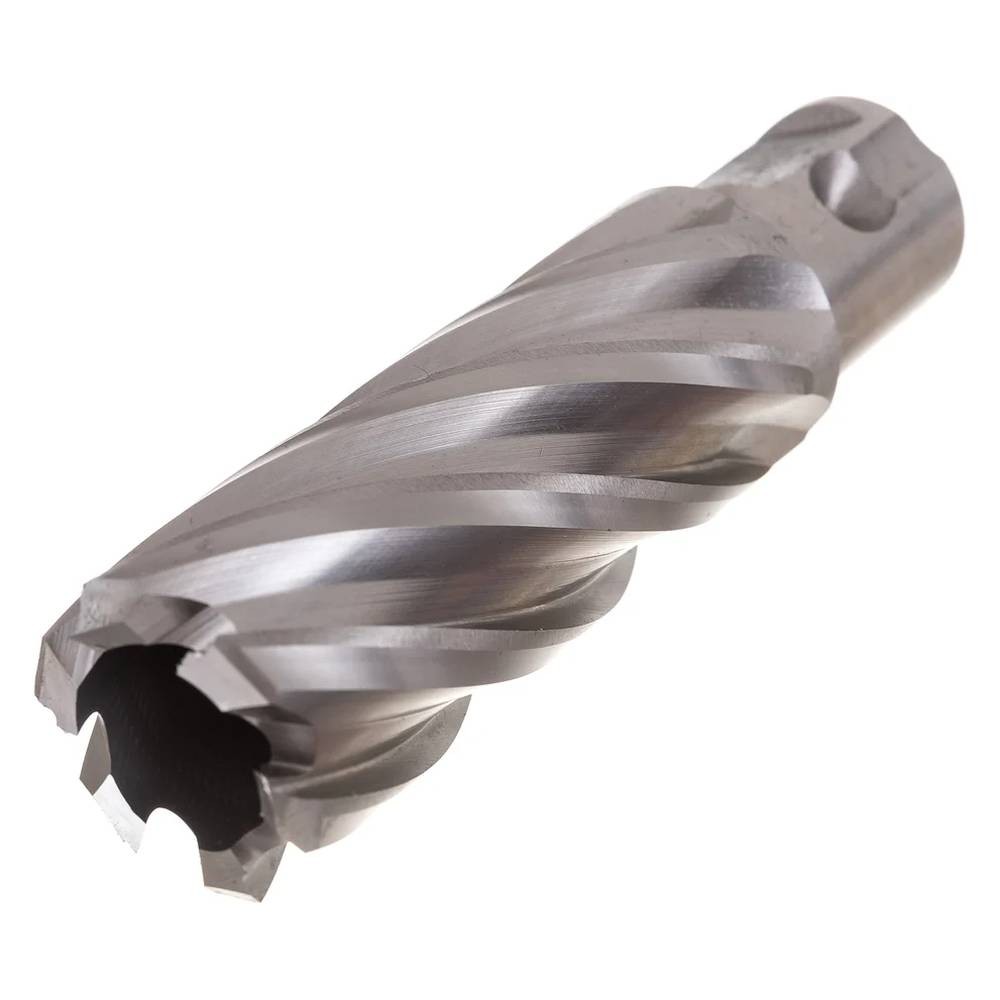 Сверло корончатое по металлу MESSER HSS 23х55мм (10-50-023) является сменным элементом для сверлильных станков на магните. Применяется при сверлении отверстий в трубах или листах из конструкционной стали, цветных металлов или пластика. Изготовлено из быстрорежущей стали — HSS. Универсальный хвостовик One-Touch позволяет использовать сверло на магнитных сверлильных станках как с захватом Weldon 19, так и с винтовым зажимом Nitto. Может быть повторно заточено несколько раз. Имеет сквозное отверстие под направляющий штифт. Обладает рядом преимуществ перед обычными спиральными сверлами: высокая скорость работы, повышенная скорость подачи, гладкое отверстие на входе и выходе. Позволяет избежать возникновения заусенцев и нежелательной вибрации во время сверления.