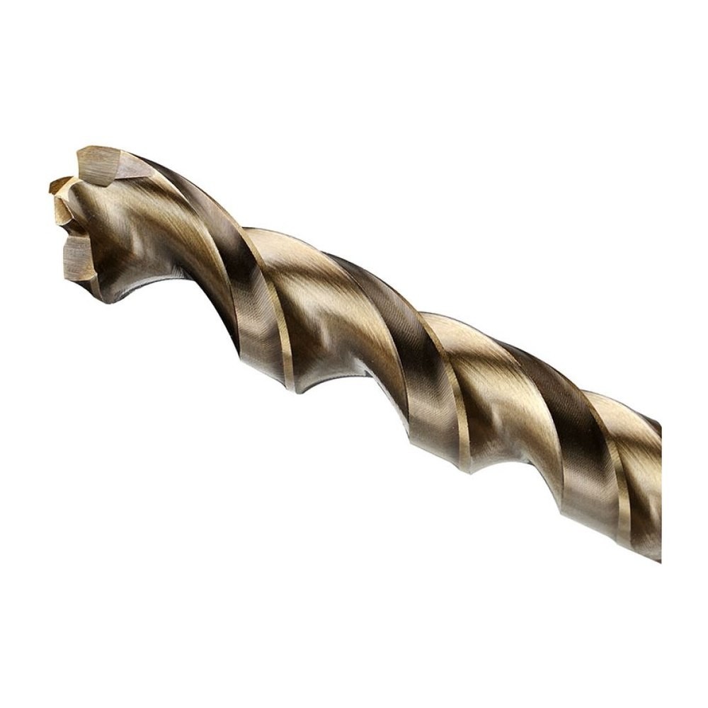 Сверло по металлу DeWalt DT5556-QZ 9.5х78мм 10шт используются при сверлении сквозных и глухих отверстий с помощью дрелей. Имеют повышенную прочность (на 50% прочнее, чем обычное HSS-R сверло). Оно сверлит быстрее и точнее других сверл, так как бурение начинается сразу после контакта с поверхностью материала, а клиновидная структура его сердечника обуславливает высокую стойкость к поломкам. Оснащено центрирующим острием, благодаря чему не требуется предварительное накернивание. Особое покрытие предохраняет сверло от перегрева и увеличивает срок его службы. Благодаря утопленным режущим кромкам отверстие получается аккуратное, без заусенцев. Хвостовик в патроне не проворачивается, за счет наличия трех продольных граней на стержне. Размер сверла указан выше хвостовика, поэтому не стирается во время эксплуатации.