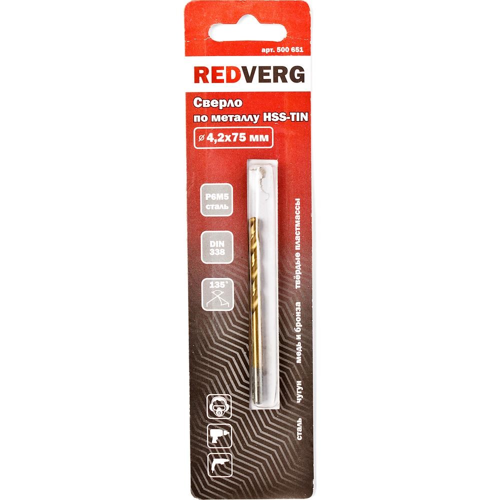 Сверло по металлу REDVERG HSS-TiN 4.2х75мм (500651)