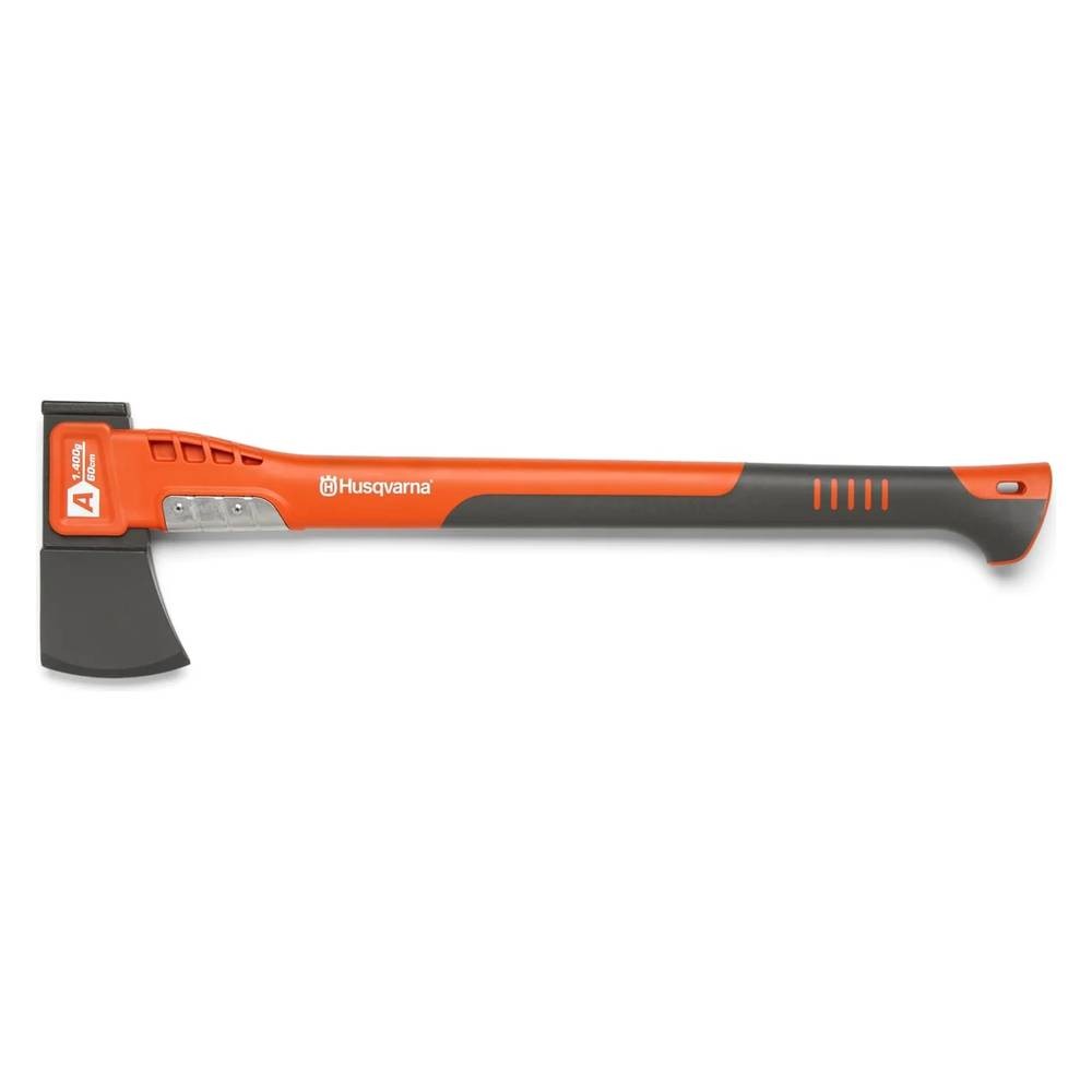 Топор Husqvarna A1400 - удобен для раскалывания чурбаков и поленьев диаметром до 60 см. Поставляется в комплекте с пластиковым чехлом для лезвия. Для обеспечения мощной контролируемой рубки центр тяжести максимально приближен к головке топора, что обеспечивает оптимальное распределение веса. Форма и геометрия лезвия позволяют выполнять различные виды работ по рубке. Топорище выполнено из армированного стекловолокном полиамида, за счет чего инструмент обладает длительным эксплуатационным сроком. Небольшой вес - 1,4 кг. Мягкое покрытие на ручке для удобной и безопасной работы. Супер широкая и прочная, фрезерованная задняя часть головки топора используется в качестве молота для забивания клина.