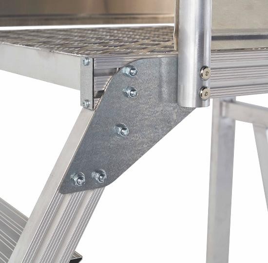 Легкий вес Простая и быстрая сборка без использования инструментов Широкие ступени из рифленого профиля Площадка размером 800х680мм Мобильность |