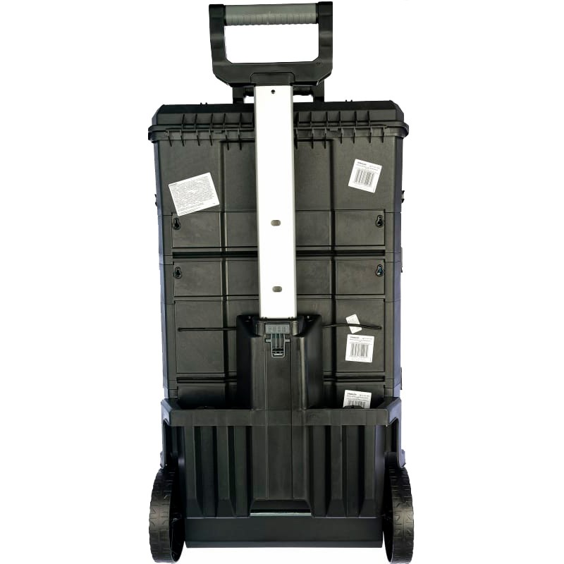 Ящик для инструмента Stanley Modular Rolling Workshop с колесами 1-79-206 имеет съемные секции с расположенными сверху ручками, оптимизирующими хранение, позволяя брать с собой на место проведения работ только то, что необходимо. Конструкция, в состав которой входят верхний ящик с выдвижным отделением и замком, управляемым одной рукой, секция с двумя выдвижными отделениями (мелким и глубоким) и различной глубины и нижняя секция с задним карманом для размещения длинных инструментов (ножовка, уровень) представляет собой универсальное решение для хранения инструментов различного размера, а также мелких деталей. Имеет заднюю телескопическую алюминиевую ручку для удобства транспортировки, а также выдвижные отделения на подшипниках с механизмом фиксации. Колеса диаметром 178 мм (7") для легкого маневрирования на рабочей площадке, а верхний ящик длиной 19" оснащен замком, позволяющим открывать и закрывать ящик одой рукой.