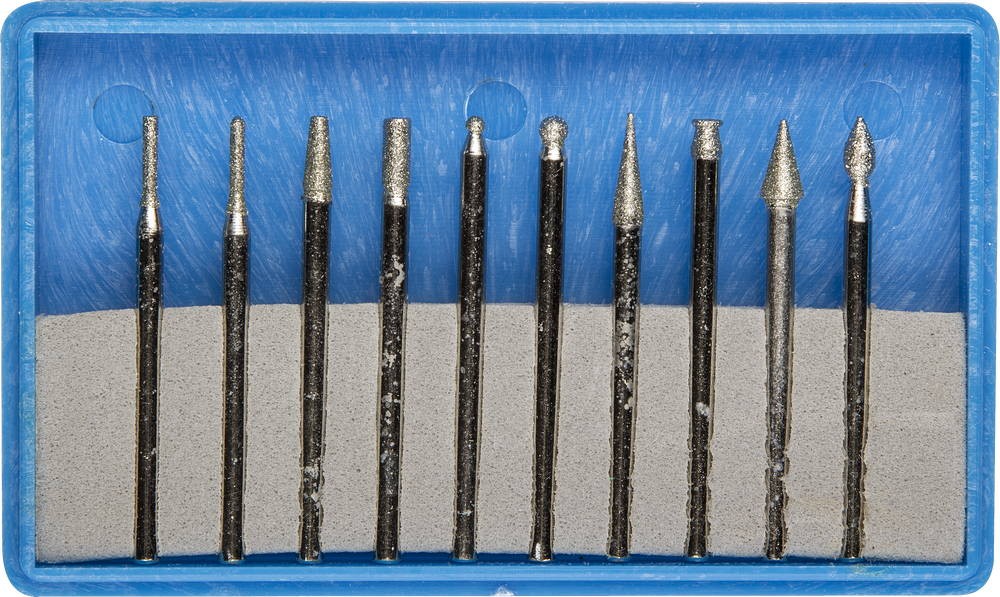 ЗУБР 10 шт, хвостовик d 3 мм, Р 150 - 180, набор алмазных мини-насадок для гравера, Профессионал (33383-H10)
