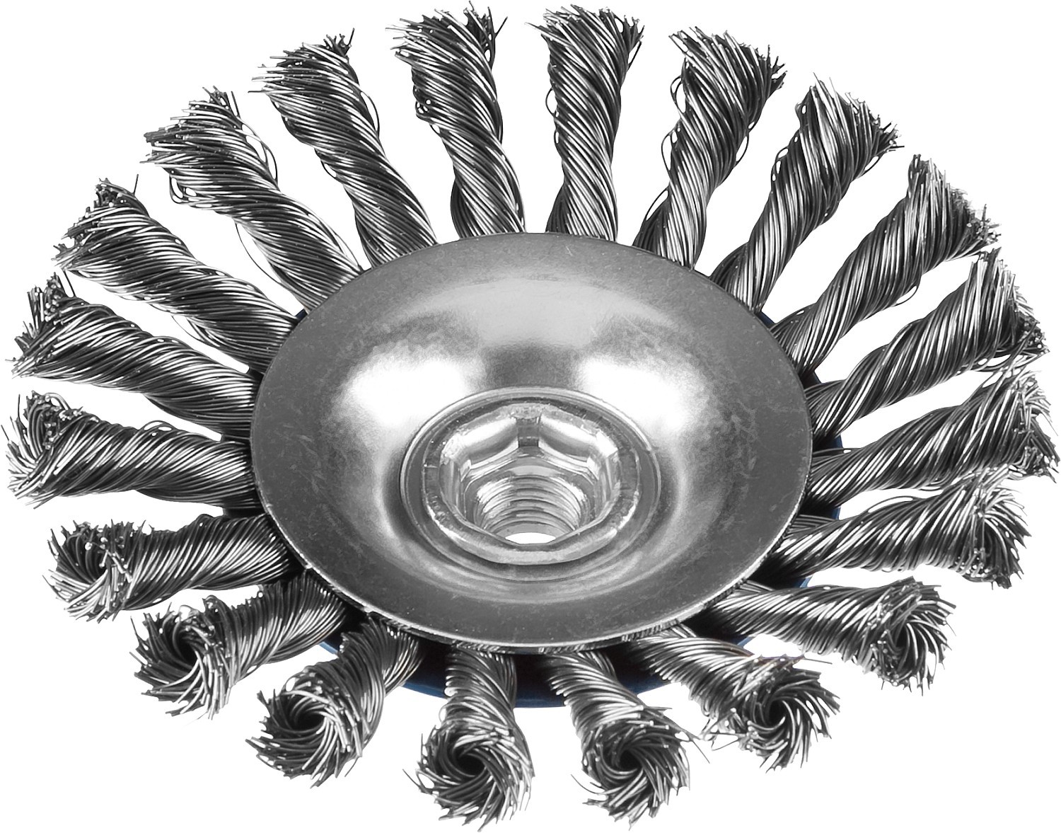 ЗУБР 115 мм, стальная проволока 0.5 мм, коническая щетка-крацовка для УШМ, Профессионал (35269-115)