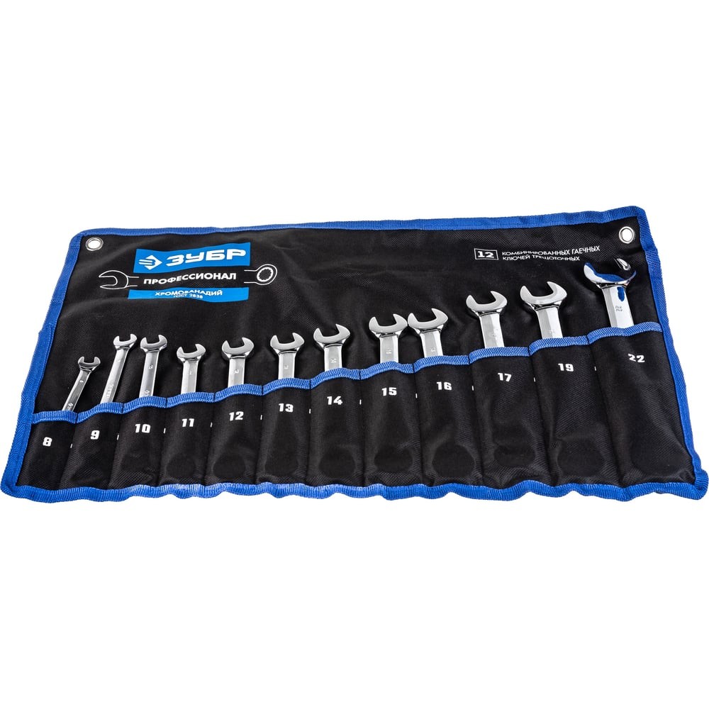 ЗУБР 12 шт, 8 - 22 мм, набор комбинированных трещоточных гаечных ключей, Профессионал (27075-H12)