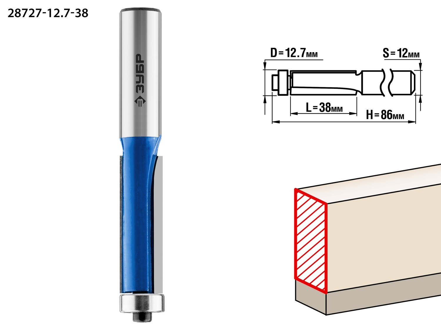 ЗУБР 12.7 x 38 мм, хвостовик 12 мм, фреза кромочная с нижним подшипником, Профессионал (28727-12.7-38)