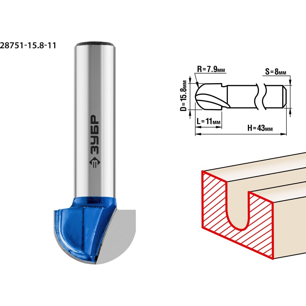 ЗУБР 15.8 x 11 мм, радиус 7.9 мм, фреза пазовая галтельная, Профессионал (28751-15.8-11)