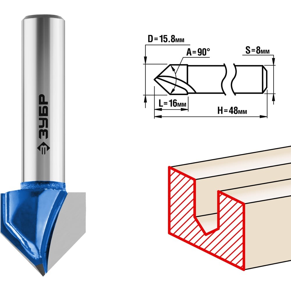 ЗУБР 15.8 x 16 мм, угол 90° мм, фреза пазовая галтельная V-образная, Профессионал (28752-15.8)