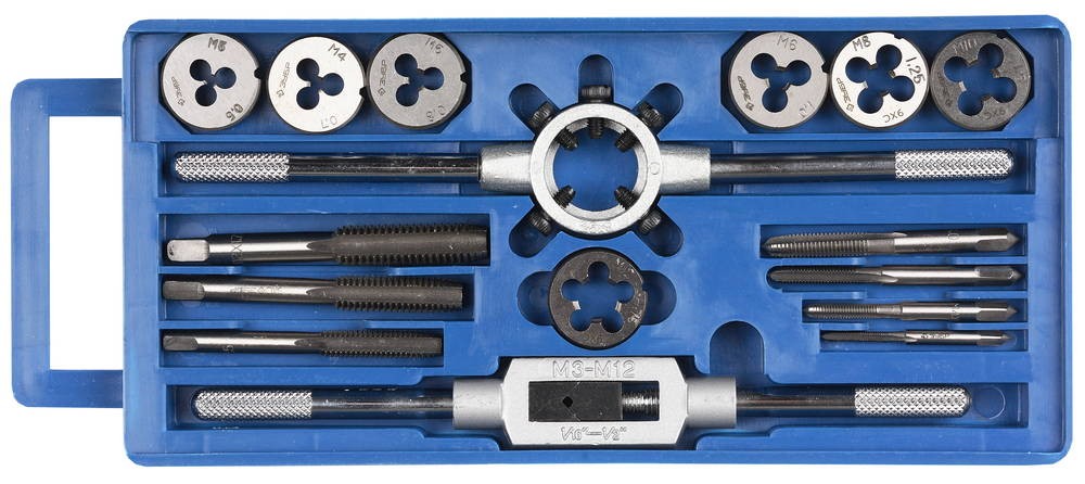 ЗУБР 16 предм., сталь 9ХС, набор метчиков и плашек в пластиковом боксе (28122-H16)