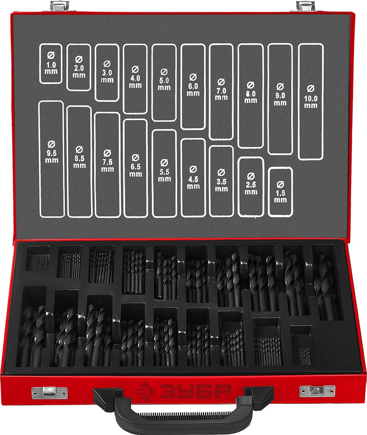 ЗУБР 170 шт, (1-10 мм), сталь Р4М2, класс В, мет.бокс, по металлу (29605-H170)
