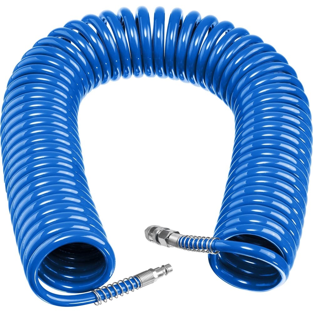 ЗУБР 20 м, 8 х 12 мм, 15 бар, воздушный спиральный шланг с фитингами рапид, Профессионал (6472-20)