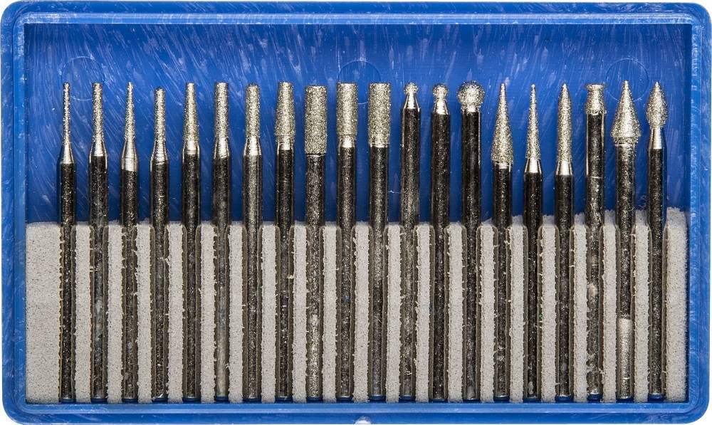 ЗУБР 20 шт, хвостовик d 3 мм, Р 150 - 180, набор алмазных мини-насадок для гравера, Профессионал (33383-H20)