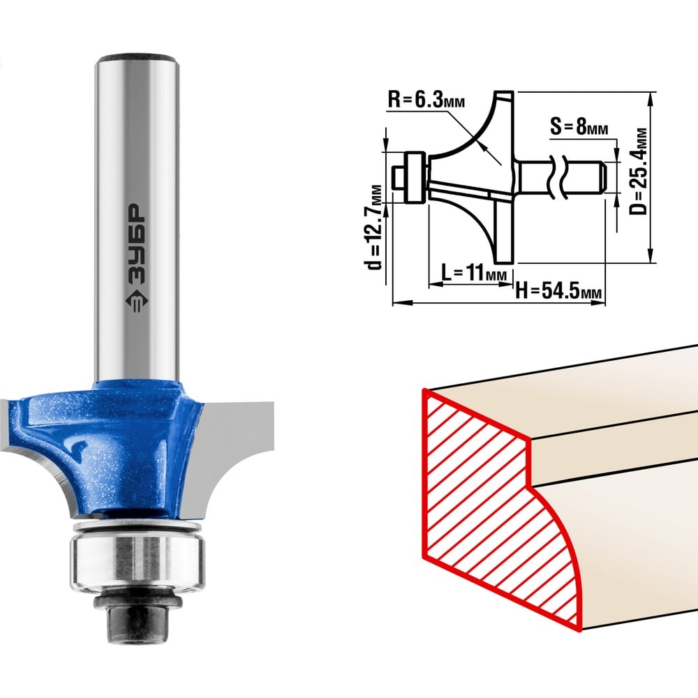 ЗУБР 25.4 x 11 мм, радиус 6.3 мм, фреза кромочная калевочная №1, Профессионал (28701-25.4)