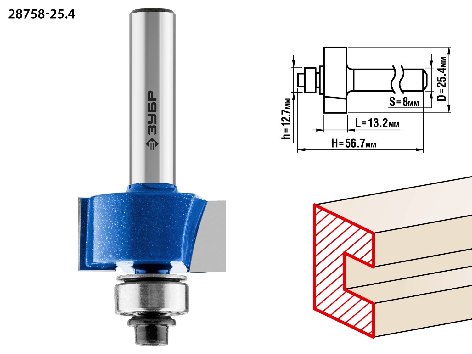 ЗУБР 25.4 x 13 мм, хвостовик 8 мм, фреза фальцевая, Профессионал (28758-25.4)