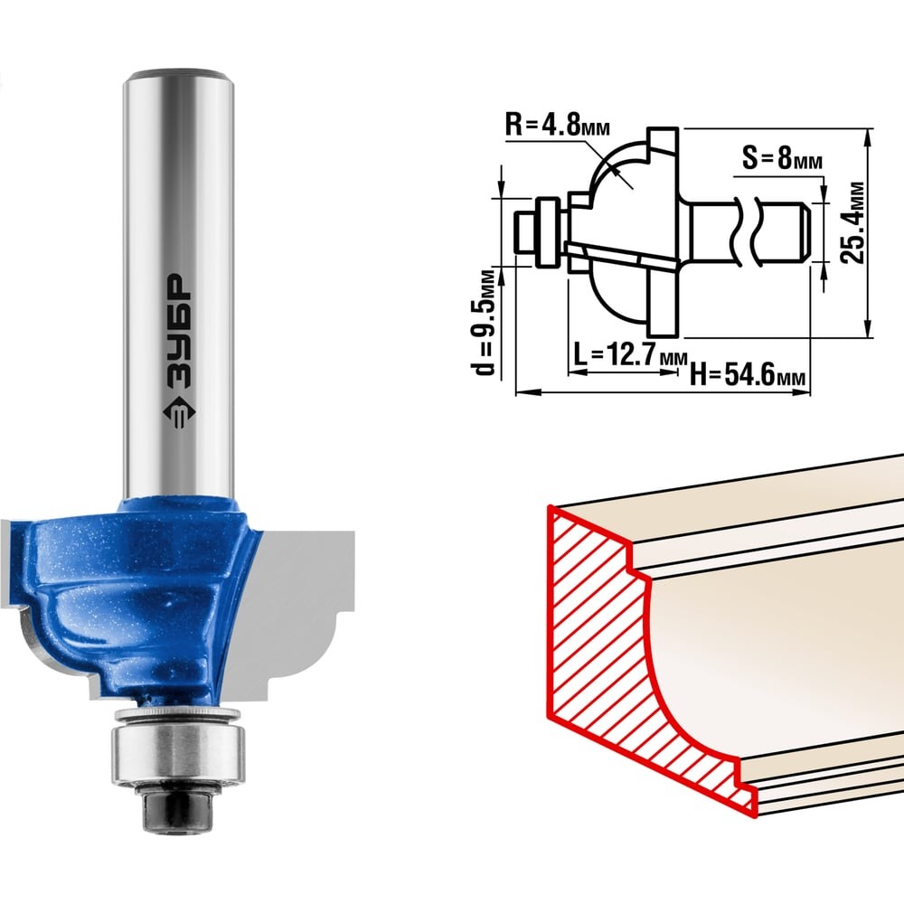 ЗУБР 25.4 x 13 мм, радиус 4.8 мм, фреза кромочная калевочная №7, Профессионал (28709-25.4)