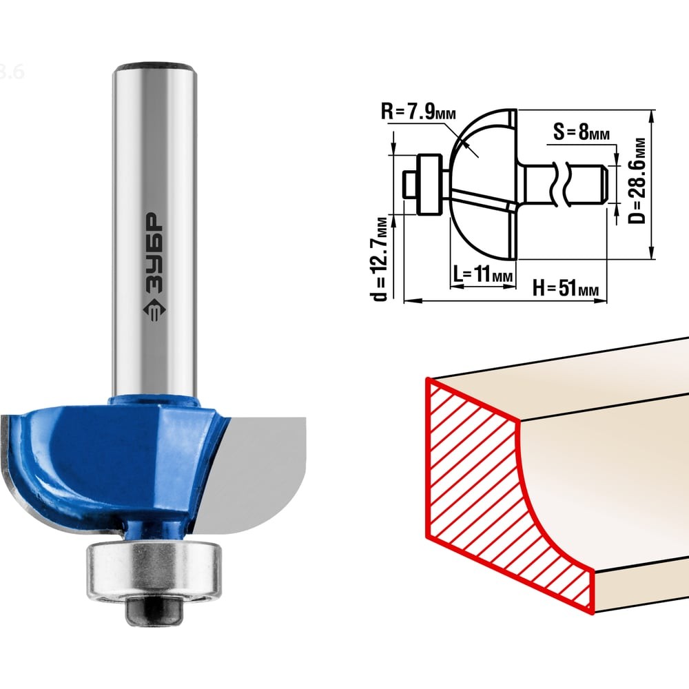 ЗУБР 28.6 x 11 мм, радиус 7.9 мм, фреза кромочная калевочная №2, Профессионал (28702-28.6)