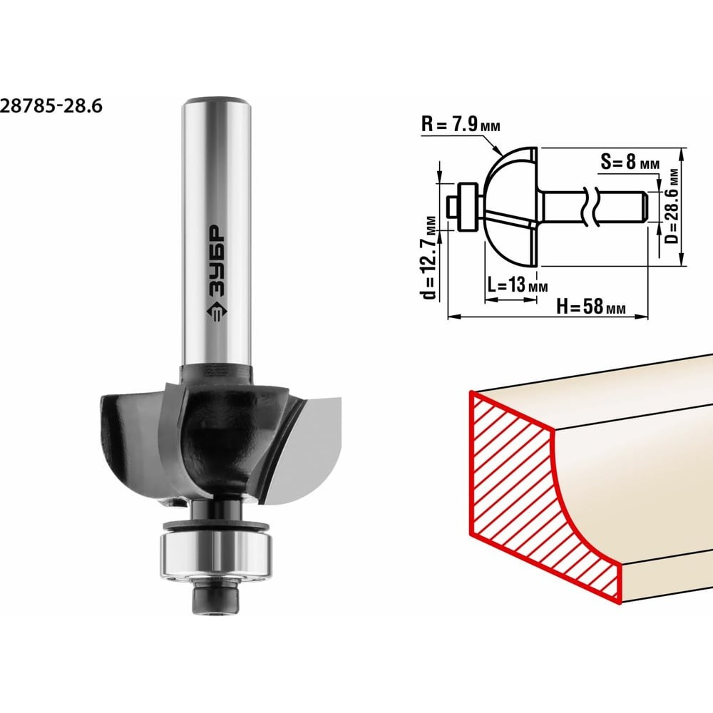 ЗУБР 28.6 x 13 мм, радиус 7.9 мм, фреза кромочная калевочная №2, Профессионал (28785-28.6)