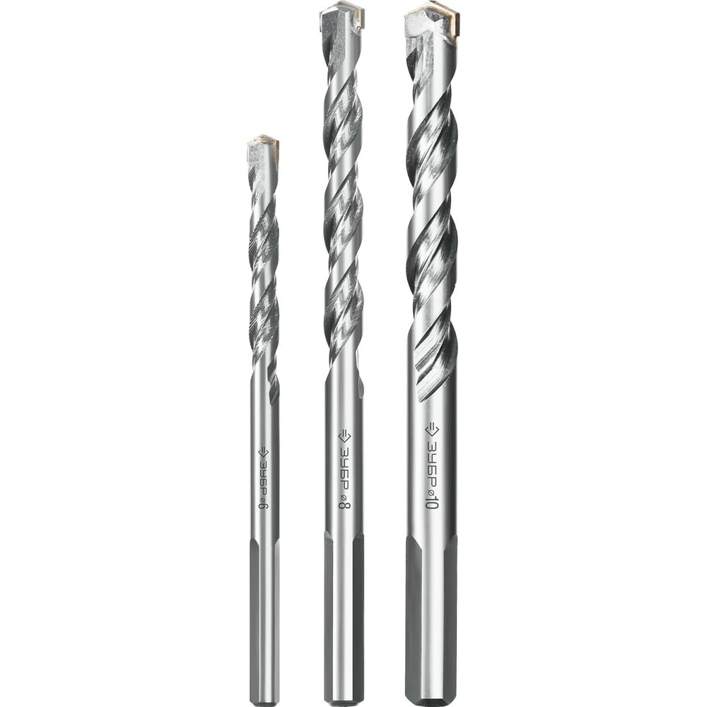 ЗУБР 3 шт: d 6-8-10 мм, трехгранный хвостовик, набор сверл по бетону усиленные, Профессионал (2916-H3)