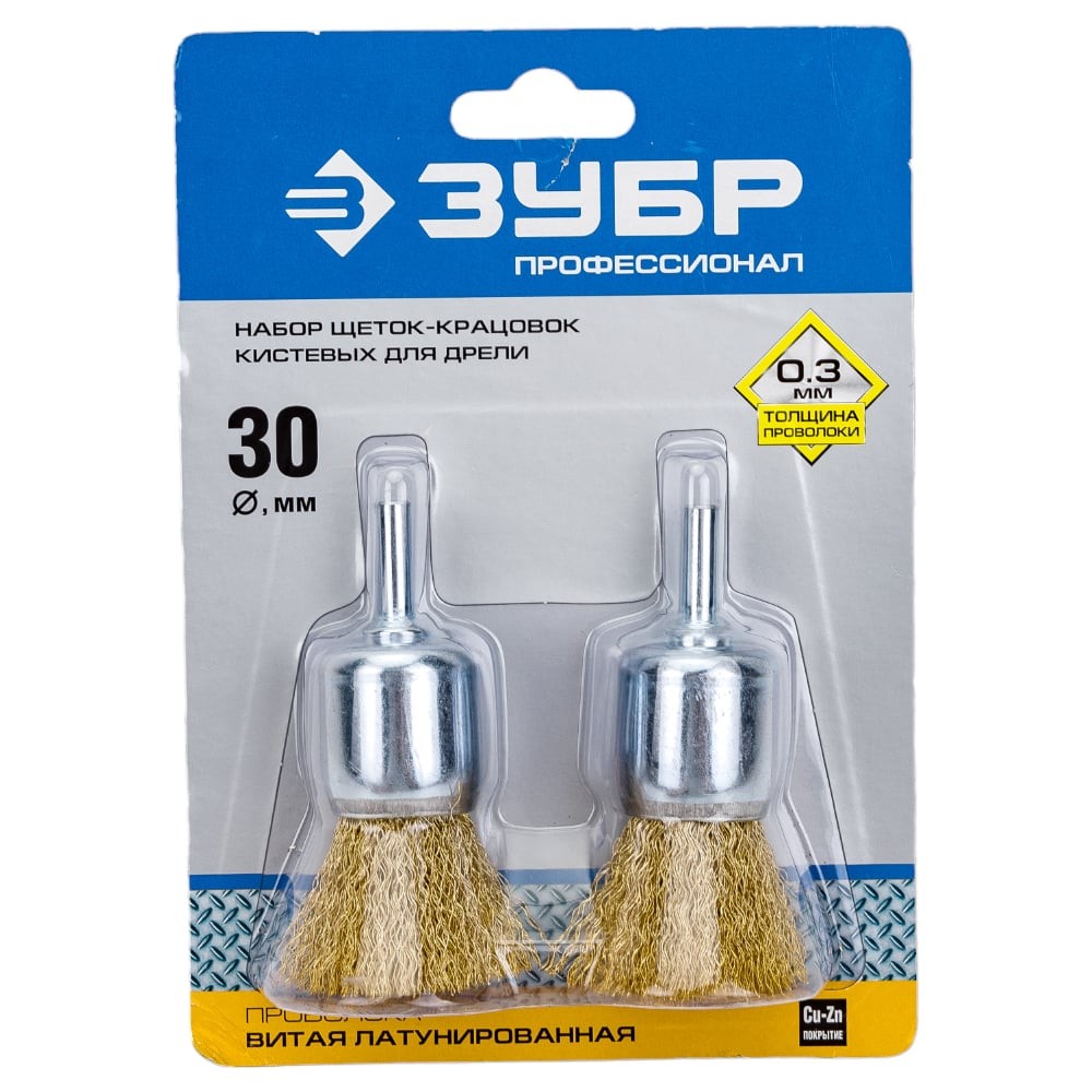 ЗУБР 30 мм, витая стальная латунированная проволока 0.3 мм, набор кистевых щеток для дрели, Профессионал (35225-30-H2)