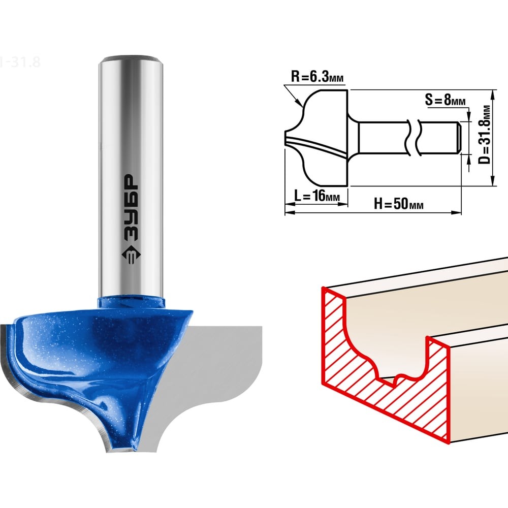 ЗУБР 31.8 x 16 мм, радиус 6.3 мм, фреза пазовая фасонная №2, Профессионал (28741-31.8)