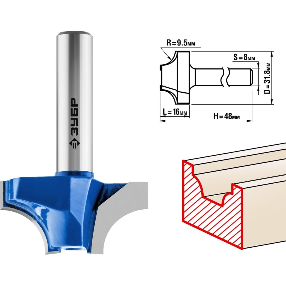 ЗУБР 31.8 x 16 мм, радиус 9.5 мм, фреза пазовая фасонная №1, Профессионал (28740-31.8)