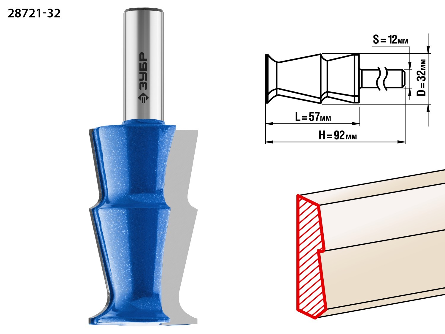 ЗУБР 32 x 57 мм, фреза кромочная калевочная №10, Профессионал (28721-32)