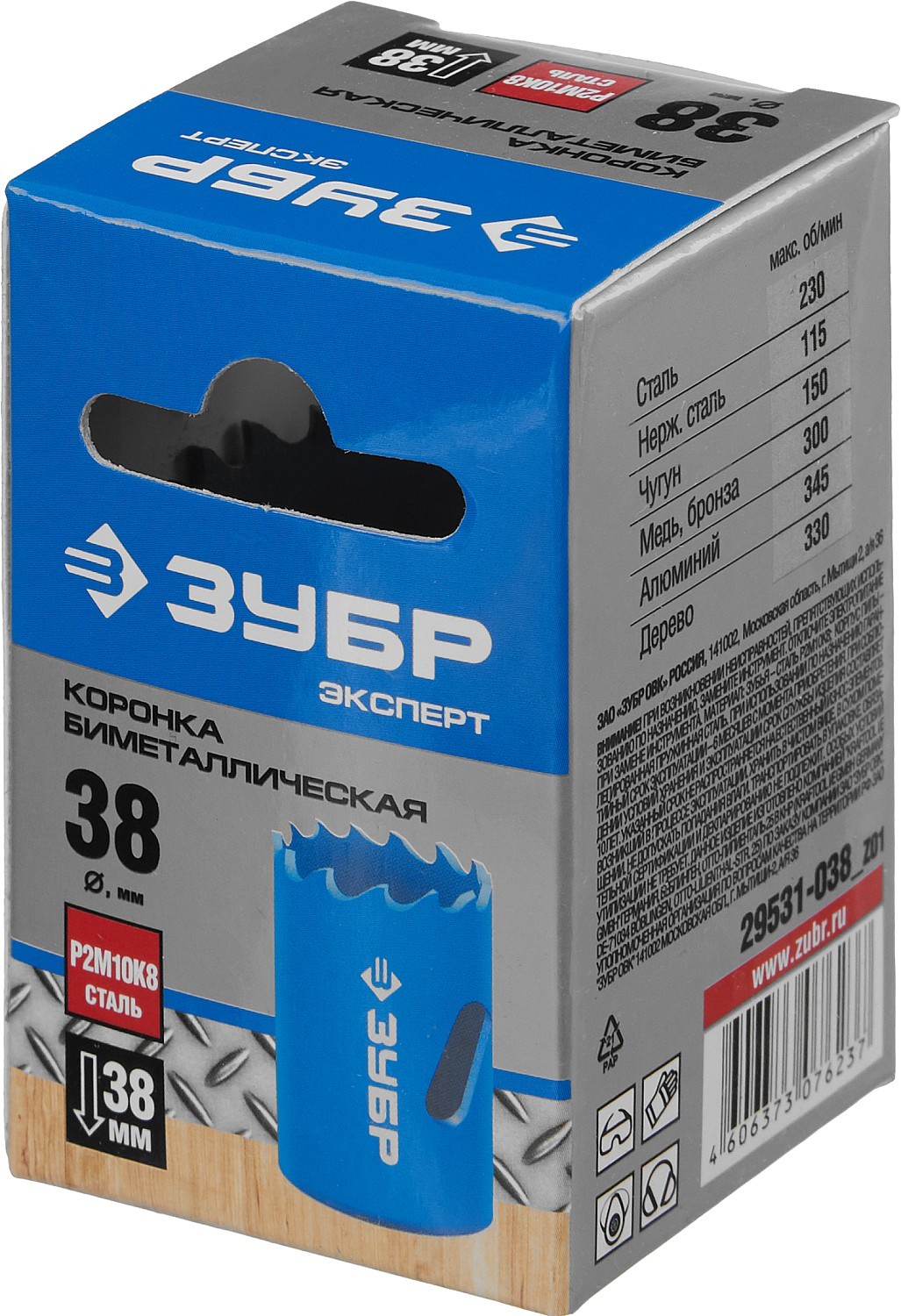 ЗУБР 38 мм, сталь Р6М5, биметаллическая коронка (29531-038)