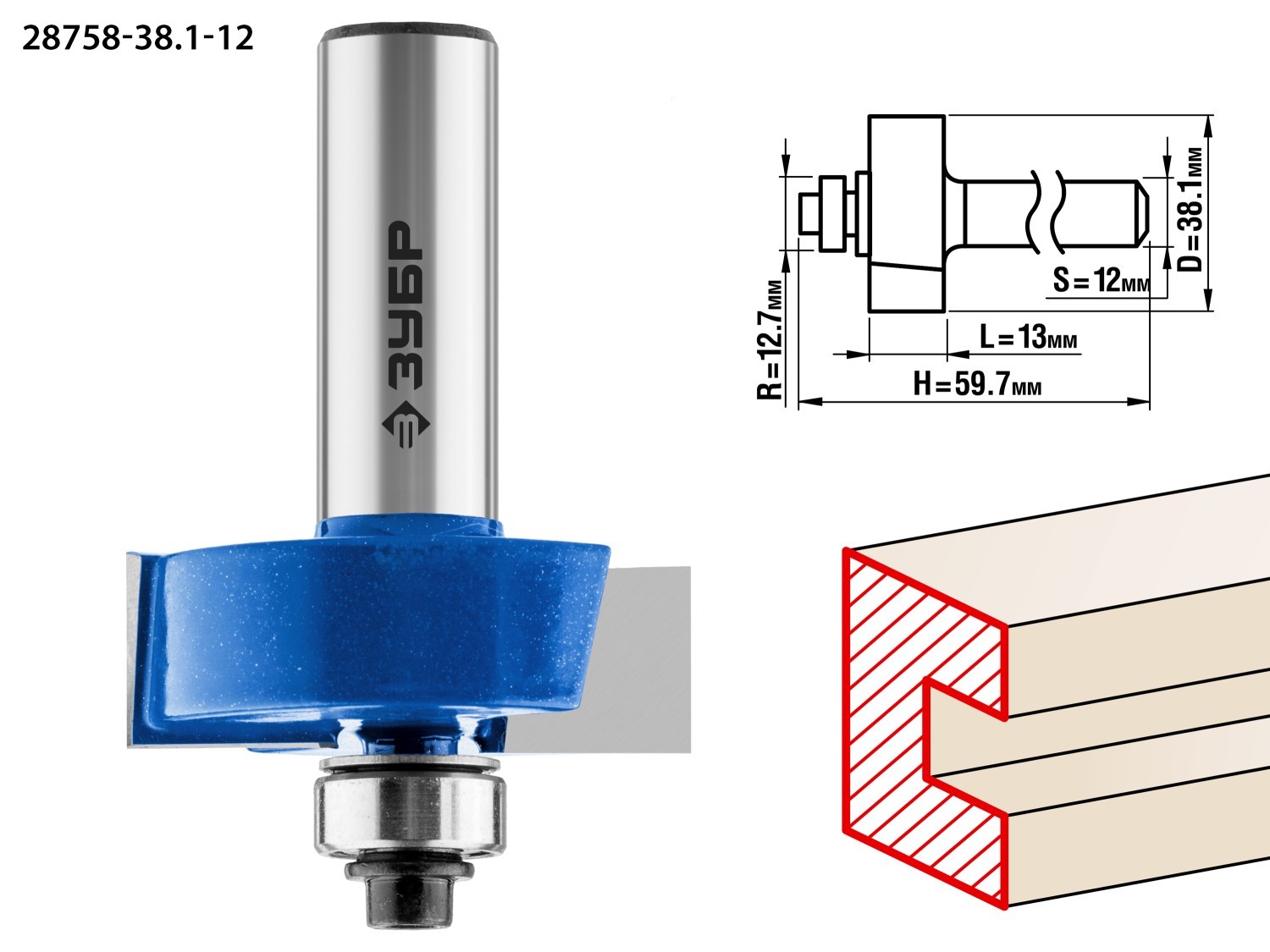 ЗУБР 38.1 x 13 мм, хвостовик 12 мм, фреза фальцевая, Профессионал (28758-38.1-12)