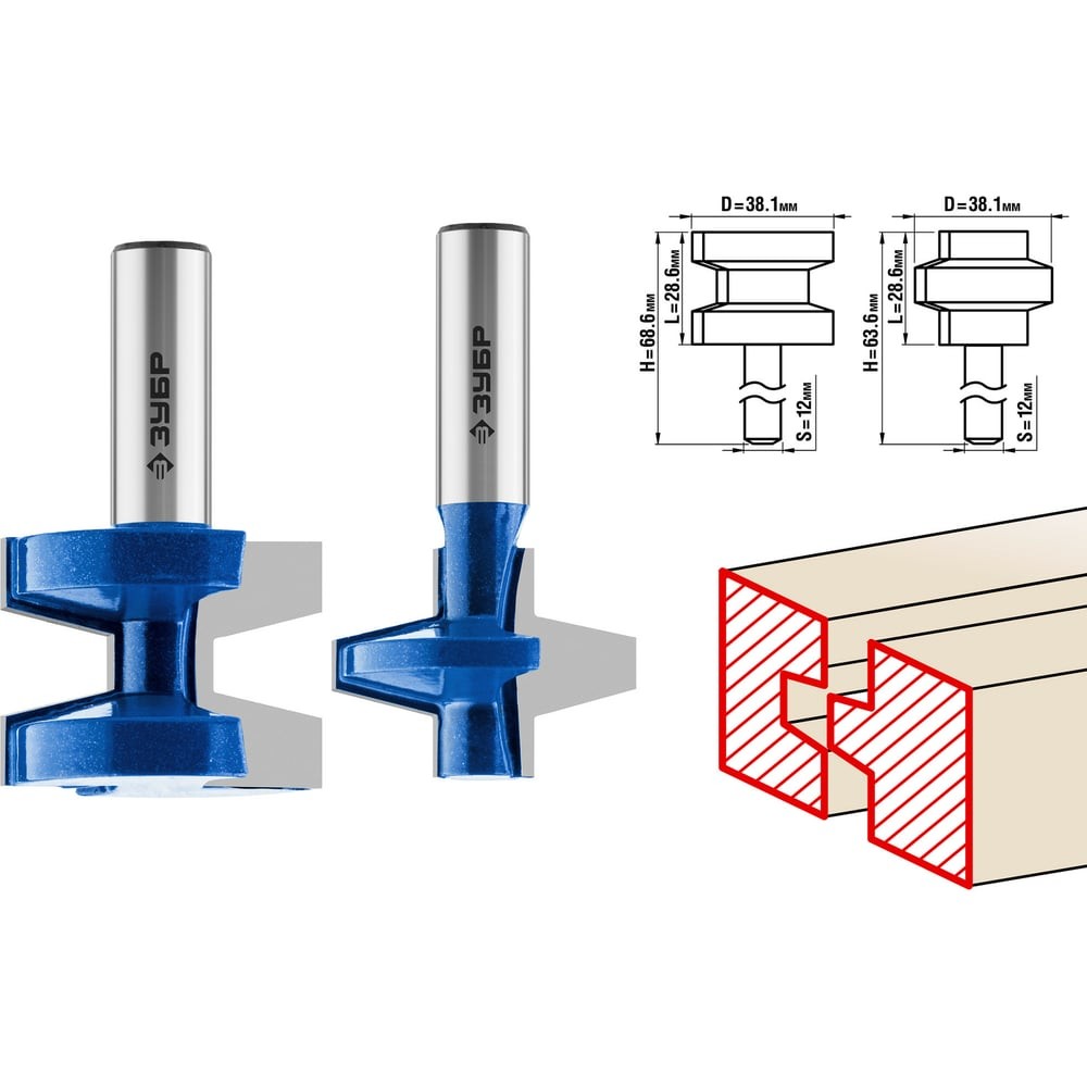 ЗУБР 38.1 x 28.6 мм, хвостовик 12 мм, набор фрез пазо-шиповых, Профессионал (28731-38.1-H2)