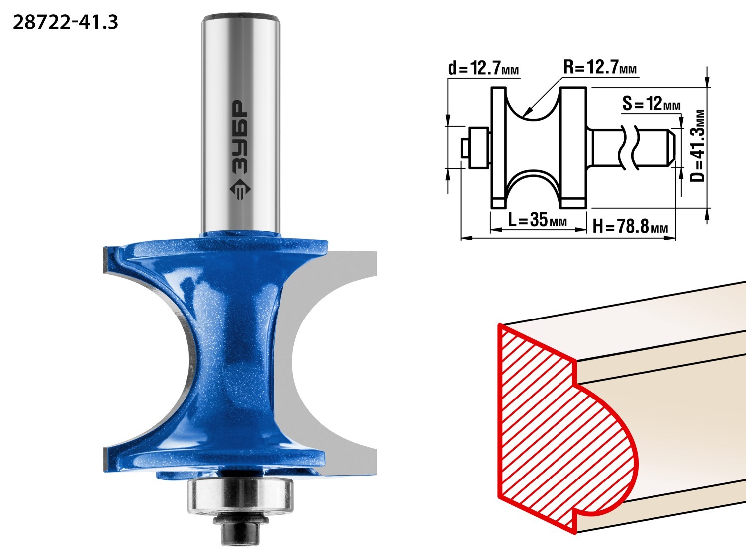 ЗУБР 41.3 x 35 мм, радиус 12.7 мм, фреза полустержневая с подшипником, Профессионал (28722-41.3)