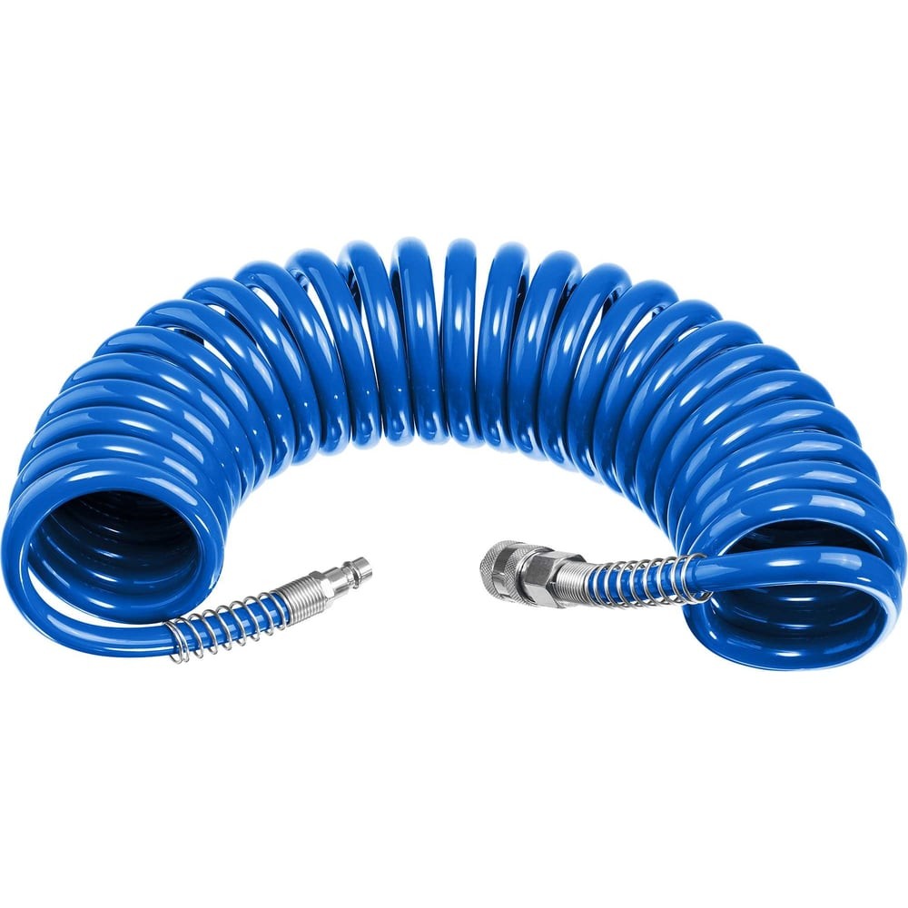 ЗУБР 5 м, 6 х 8 мм, 15 бар, воздушный спиральный шланг с фитингами рапид, Профессионал (6473-05)