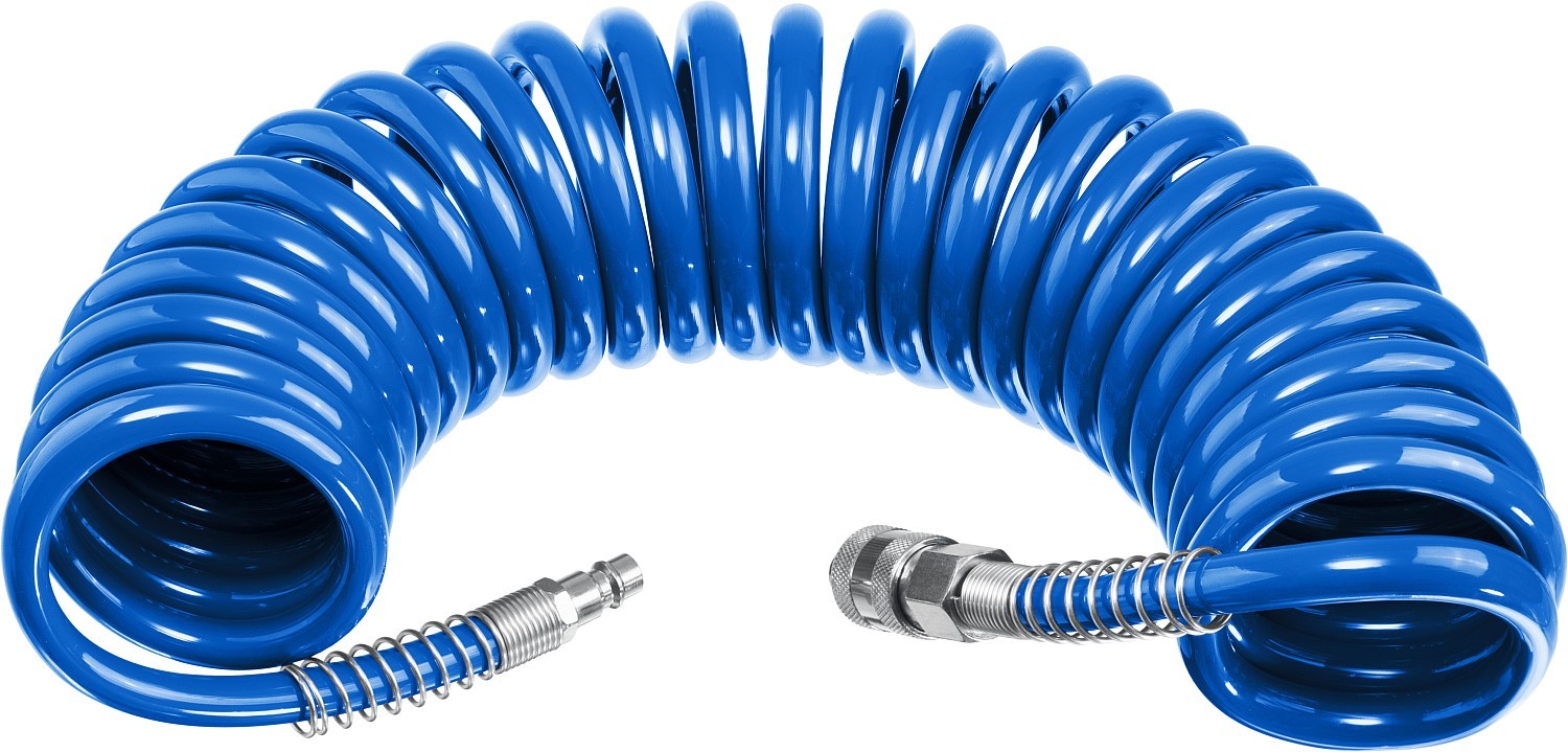 ЗУБР 5 м, 8 х 12 мм, 15 бар, воздушный спиральный шланг с фитингами рапид, Профессионал (6472-05)