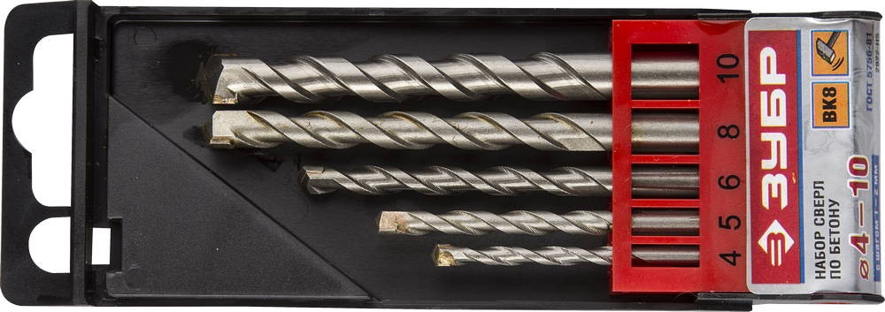 ЗУБР 5 шт: d 4-5-6-8-10 мм, набор сверл по бетону (2922-H5)