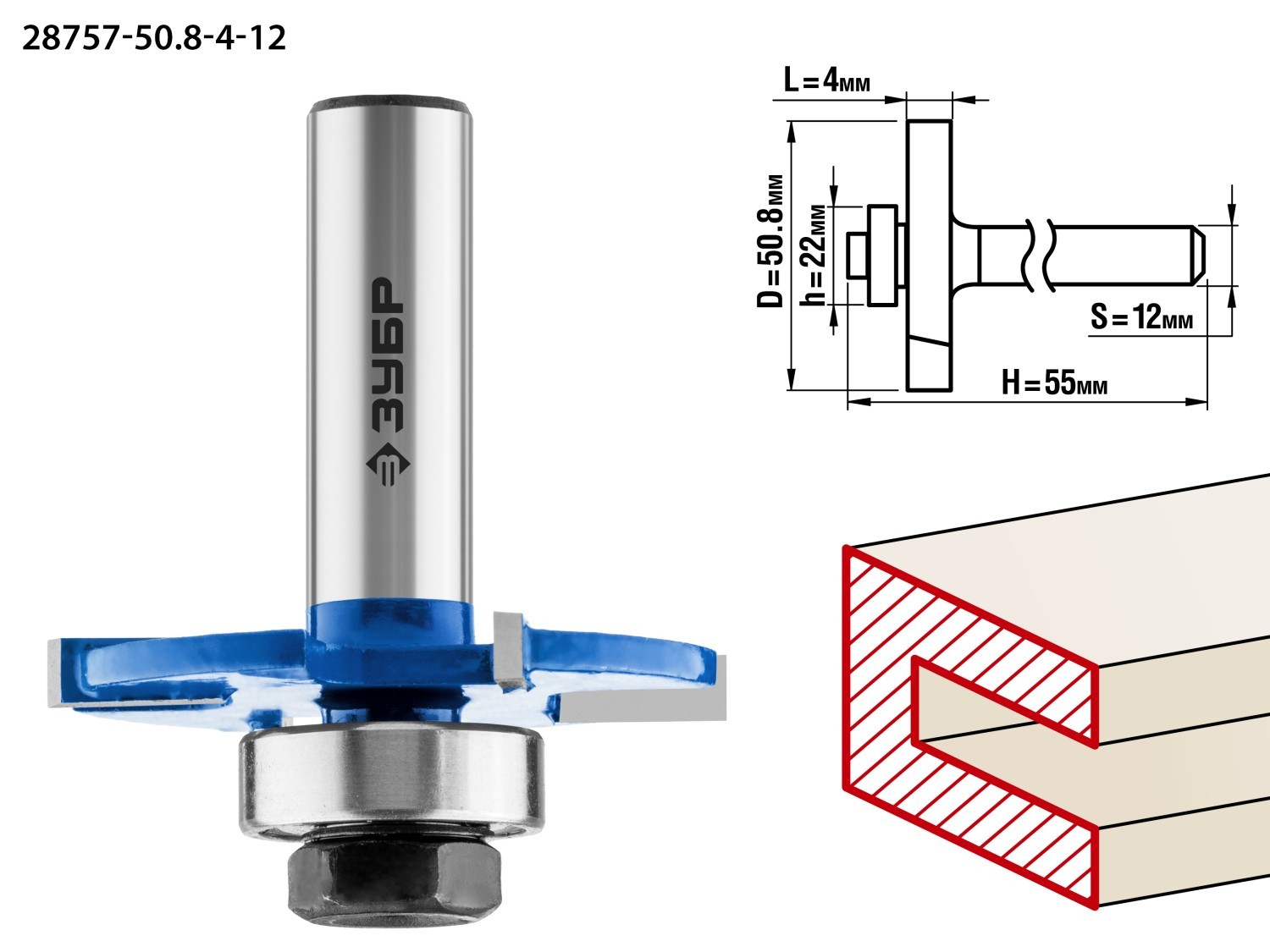 ЗУБР 50.8 x 4 мм, хвостовик 12 мм, фреза горизонтально-пазовая, Профессионал (28757-50.8-4-12)