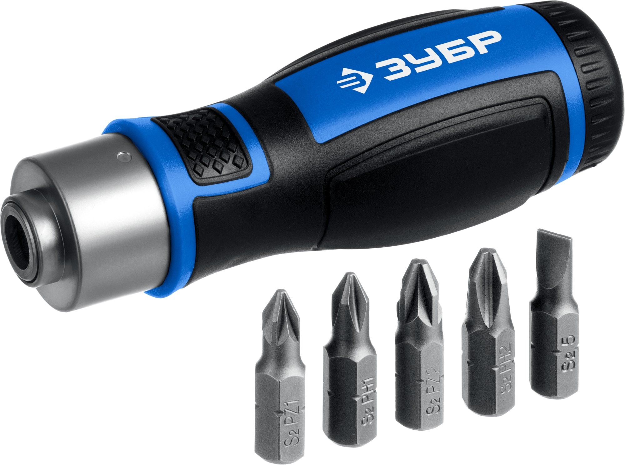 ЗУБР 6 предм., Реверсивная отвертка с насадками (25171)
