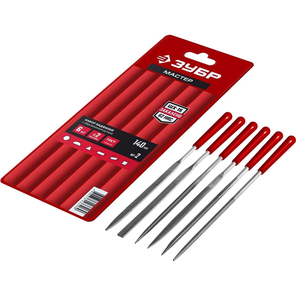 <div class="catalog-product-attributes__white-gradient"></div> Набор надфилей 6 шт 140 мм, в чехле, с ручками ЗУБР 16014-H6 - профессиональный режущий инструмент для тонкой обработки металлических поверхностей: для тонкого опиливания, зачистки поверхностей, доводки небольших деталей.Двойная насечка (№2 -бархатная) зубьев повышает производительность опиливания металлических заготовок высокой твердости. |
