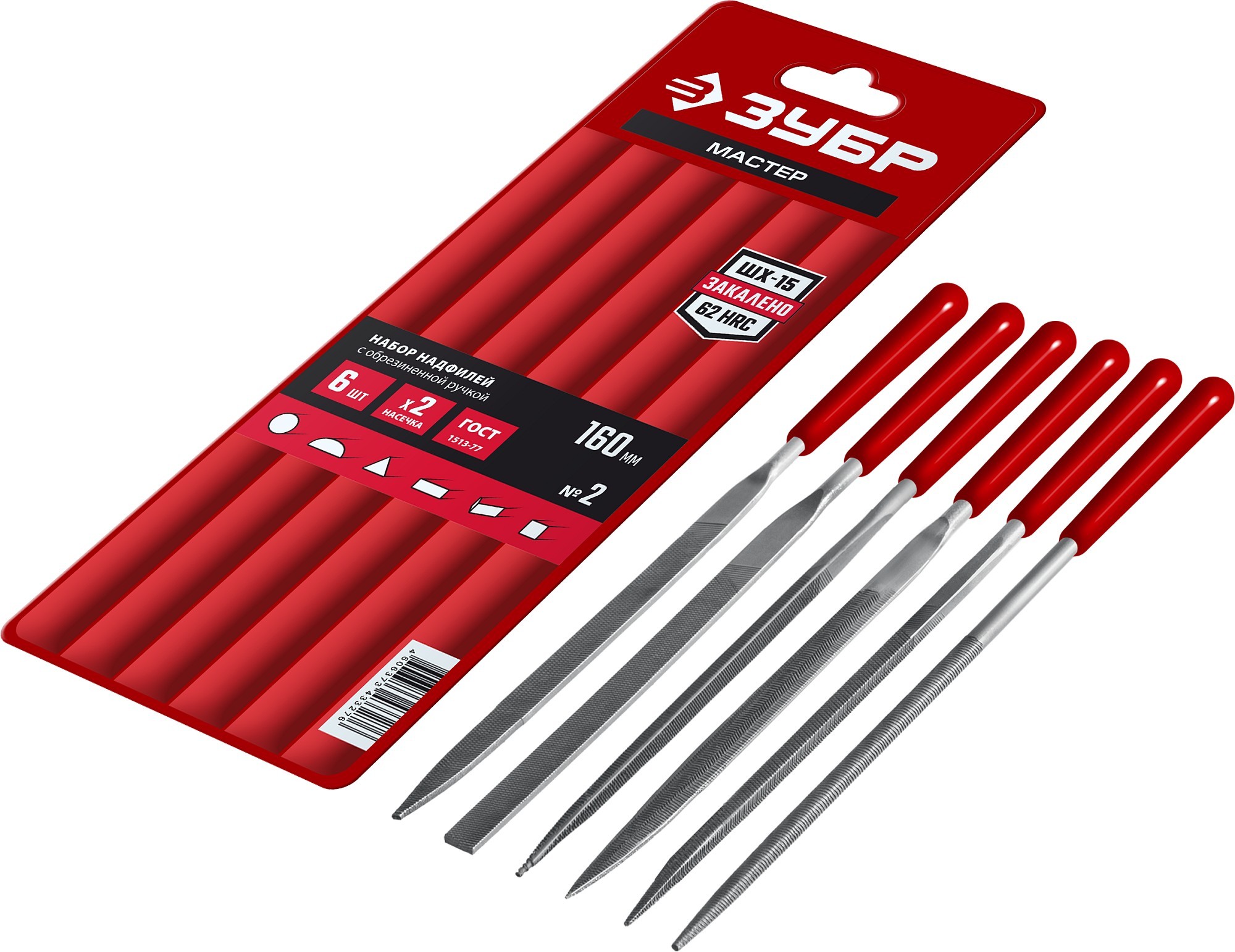 ЗУБР 6 шт, 160 мм, в чехле, с ручками набор надфилей (16016-H6)